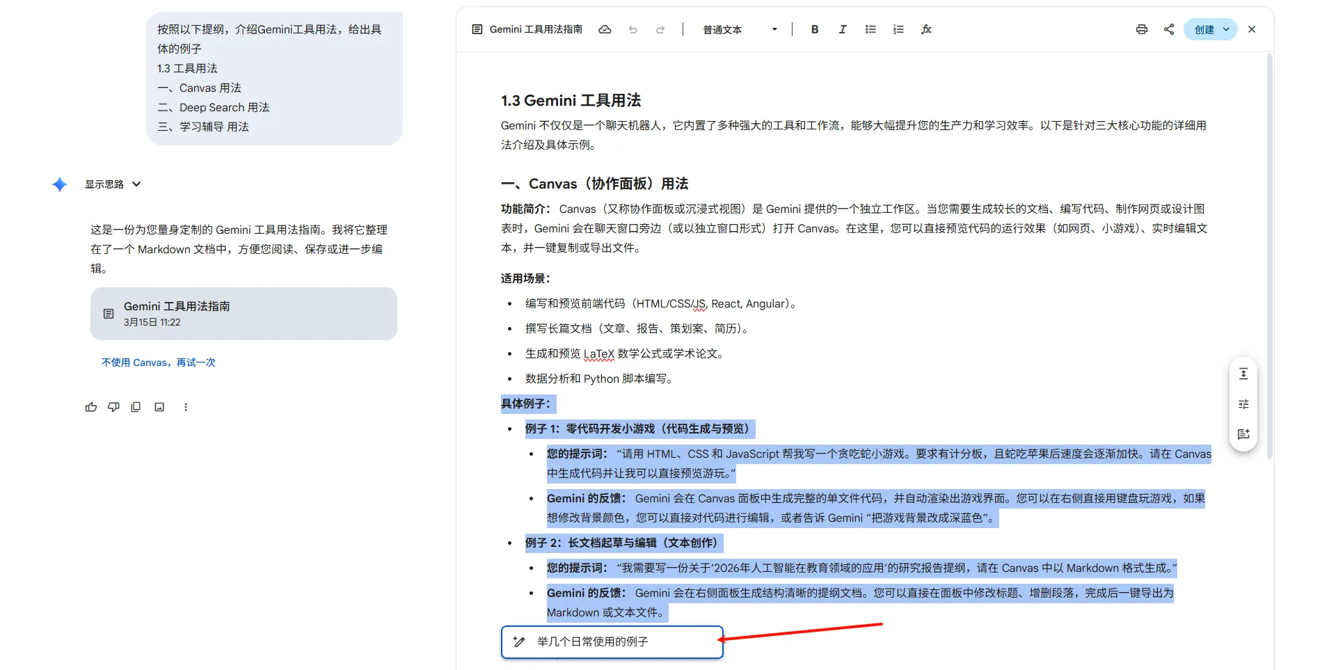 Gemini 不仅仅是一个聊天机器人,它内置了多种强大的工具和工作流,能够大幅提升生产力和学习效率。以下是针对三大核心功能的详细用法介绍及具体示例。